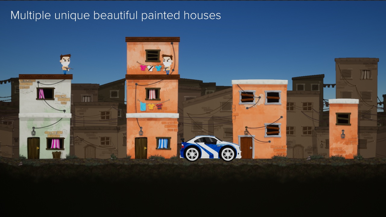 EVEN MORE! You will get a beautiful 2d painted original-made assets with Houses, Grounds, Objects, Enemies and Cars!