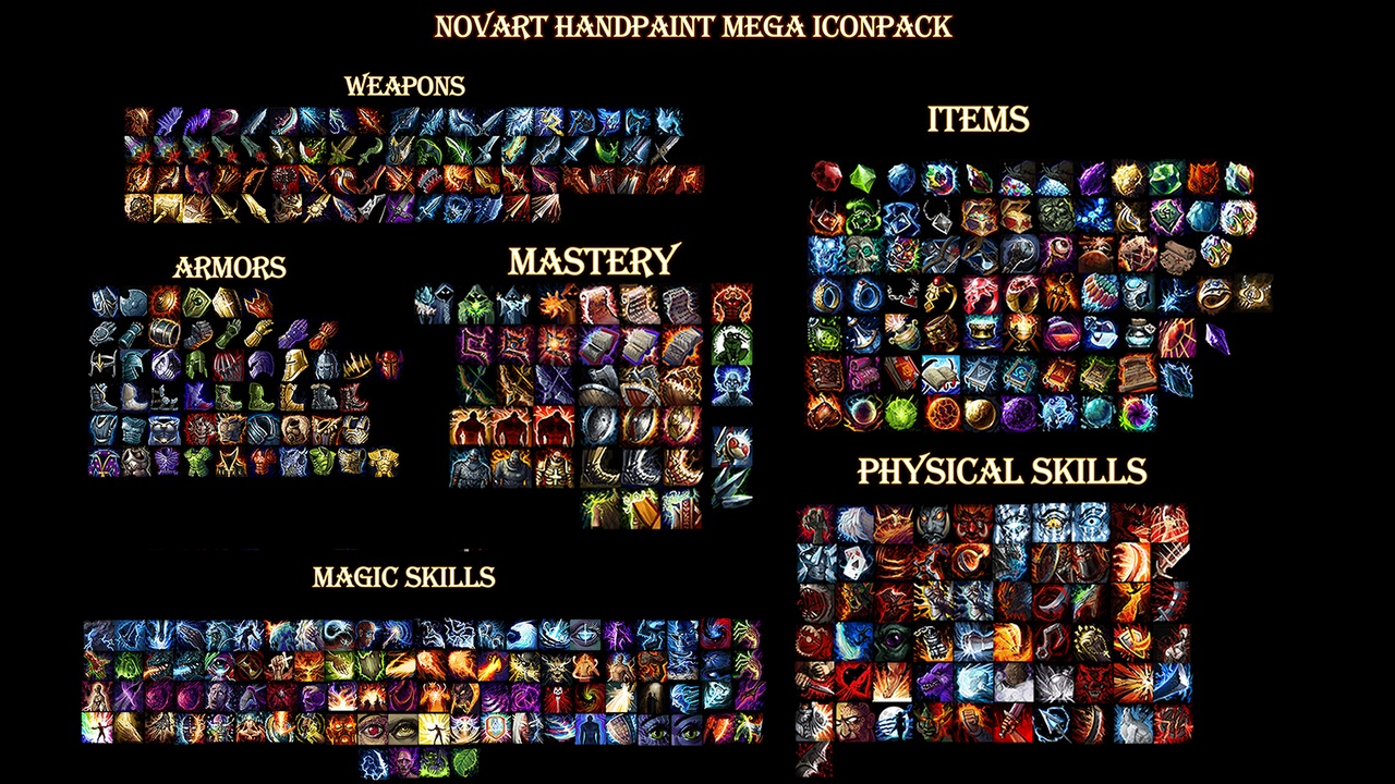 • 77 Misc item icons (potions, books, spheres, crystals, jewelry)