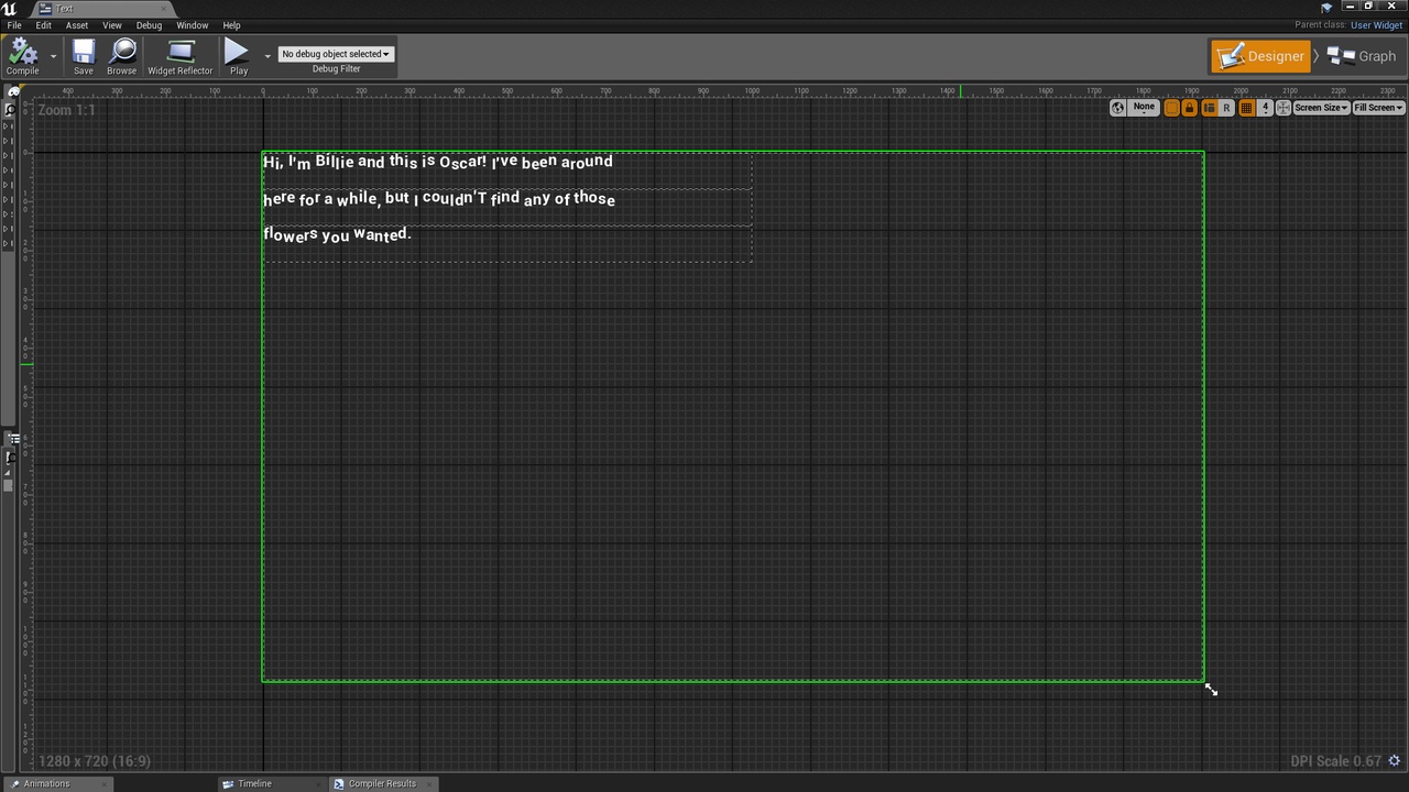 Concepted for multiple lines of text. Uses data tables for string input. A public line length variable allows for adaptive text wrapping.