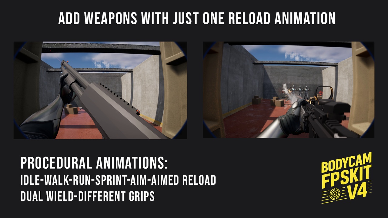 Component-based, runtime-editable procedural animations, and a complete FPS foundation where core actions and systems β€” run, sprint, fire, reload, slide, menus, save/load, HUD β€” all work seamlessly together. Plus Bodycam mode, constant updates, and a 500+ dev community.