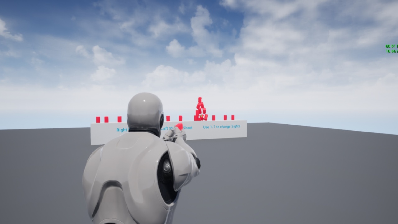 This Project was made to recreate aiming down sights in third person and make gunplay more immersive. The dynamic crosshair simulate recoil, gun sway and bounce while walking. It includes seven “sight styles” to fit your gun or you can easily add your own textures.
