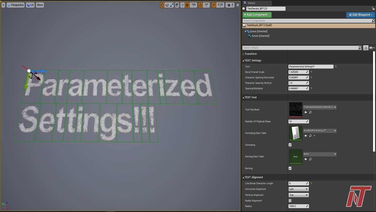 - Font Decal Blueprint that arranges a series of character decals based on a text input