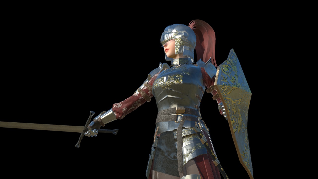 This asset could be used for fantasy rpg games, in my concept design, she is a captain of royal knights, she is the enigmatic woman, dressed in a gorgeous battle dress and gold light armor, with a bird wing mask covering half her face, but still able to see her inhuman beauty. She know the city and the king very well.