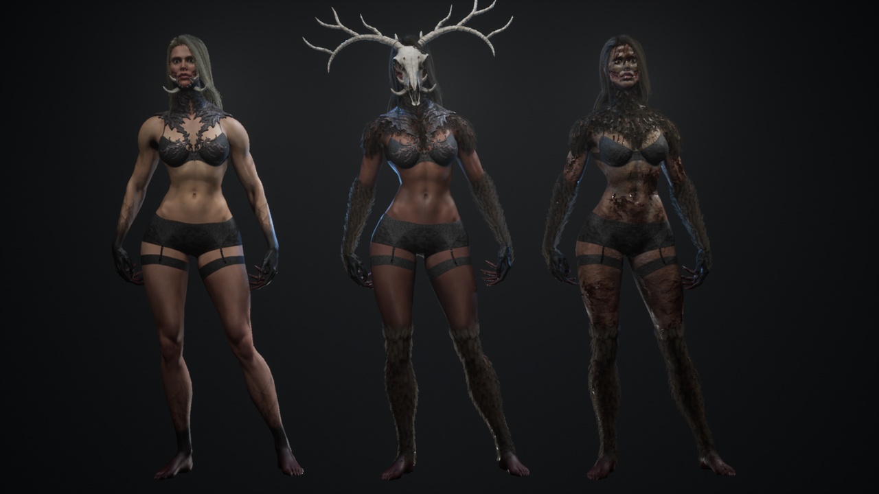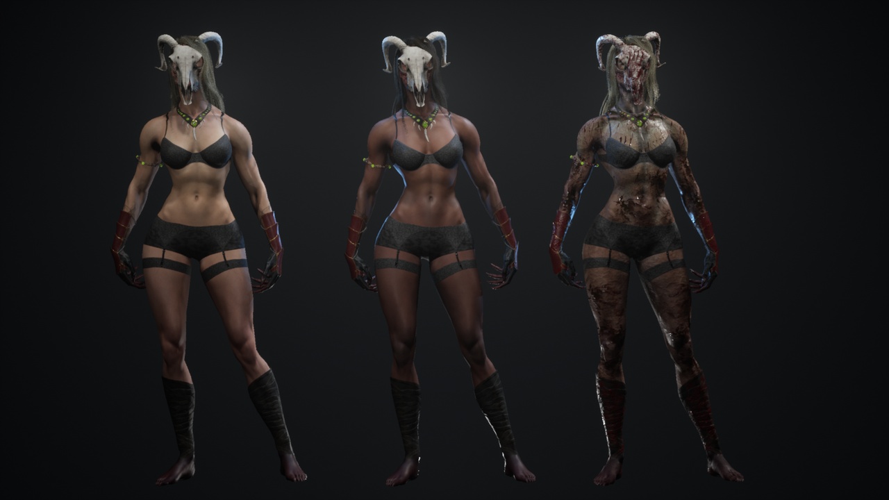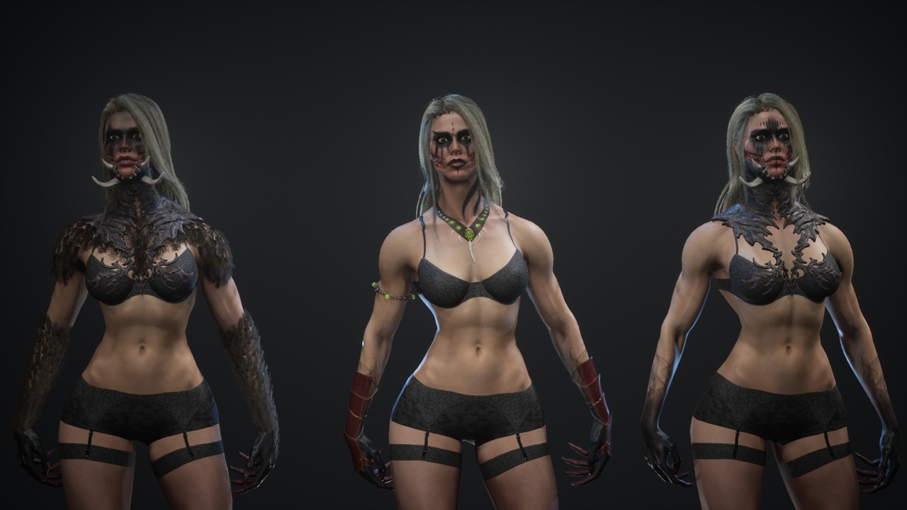 in the model there are 3 sets of textures on 2 heads there are additional tattoos (3 pieces) in the model there are options for a set of armor that are combined with texture sets