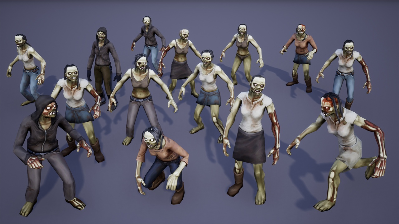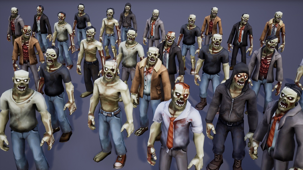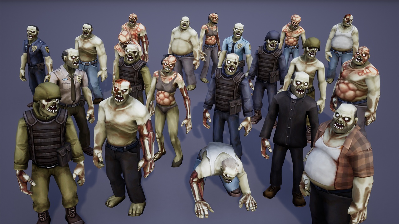 Fully customizable, mobile friendly low poly animated zombies. 61 different models with hand painted Textures.