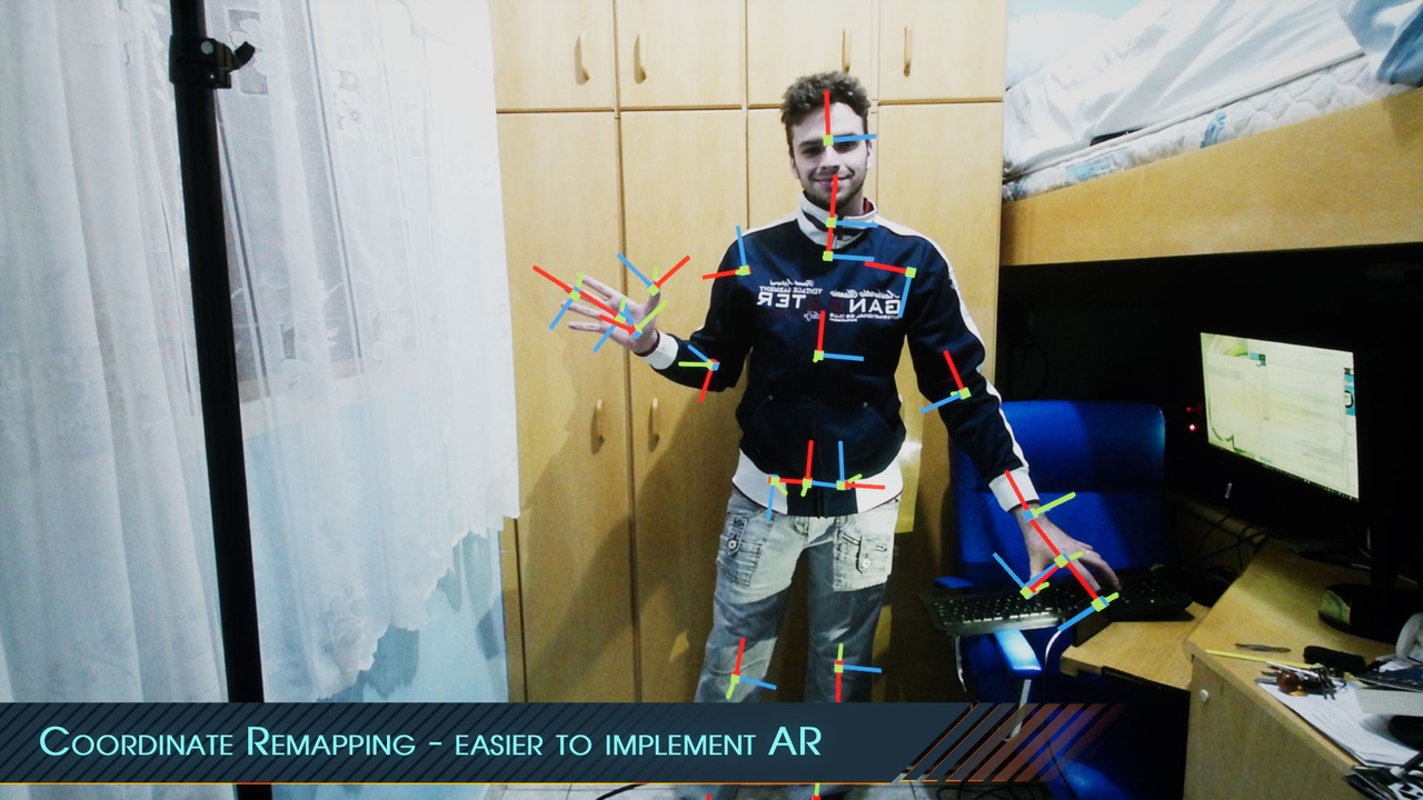 Besides access to the standard Microsoft Kinect API coordinate remapping methods, the plugin also comes with other remapping features that facilitate AR applications, like getting the location of a joint in the Color frame without losing its depth information. Every location and orientation was adapted to Unreal’s coordinate system and Joints transforms are compatible with the Engine’s Mannequin character rig.