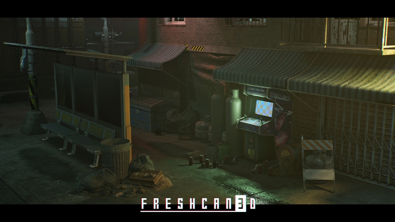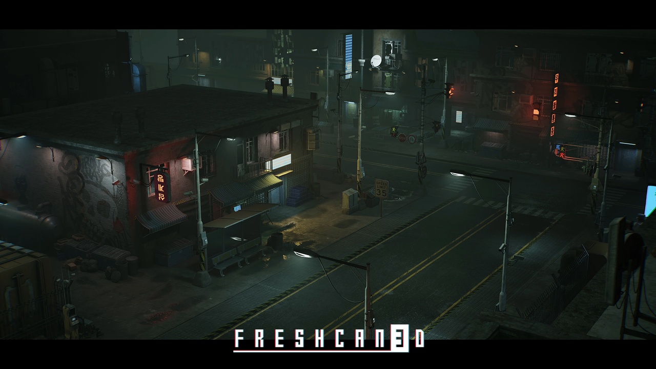 This pack  made by Freshcan 3D team includes all the essential assets to create Cyberpunk style slums and streets including Modular architecture kit, Road props, Street props, Abandoned Buildings, Street and Facade Props and so on.