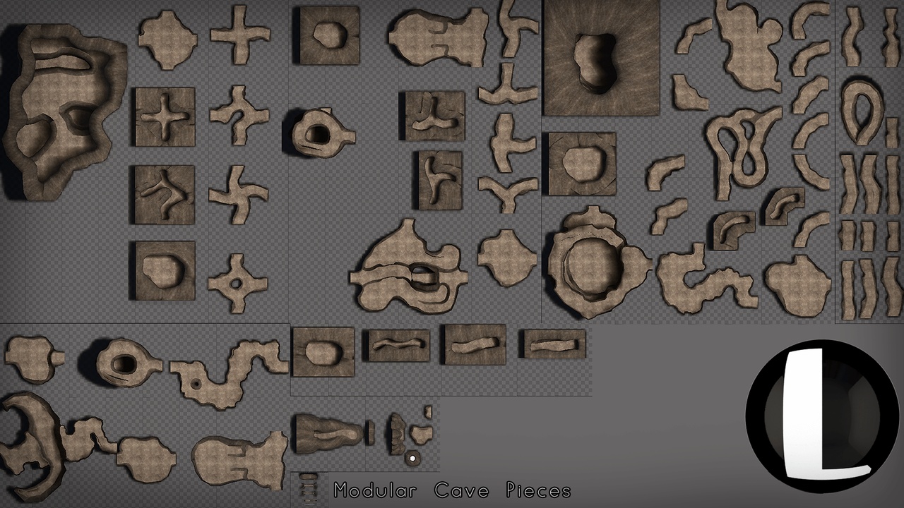 516 meshes (modular cave pieces, rocks, arches, columns, floors, walls, etc)