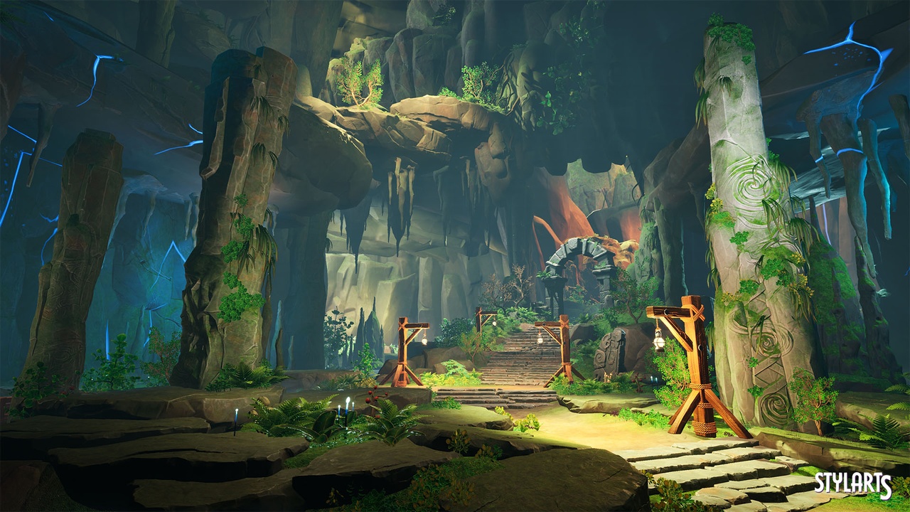 Stylized Lost Cave with 208 Assets. There are many different types of Assets to help you create or polish your Environments. All Assets made with unique concepts and Showcased Example levels are also included in the Project.
