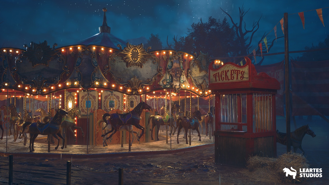 Are you ready for a ghost-filled adventure in the horror-themed carnival environment? This package offers top-quality assets, textures, and animations for your amusement park, including a self-rotating carousel prepared with blueprints.