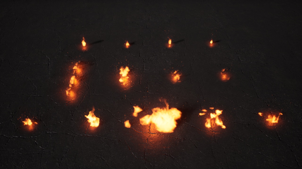 13 Fire effects wrapped in BP’s, these can be used in various environments.