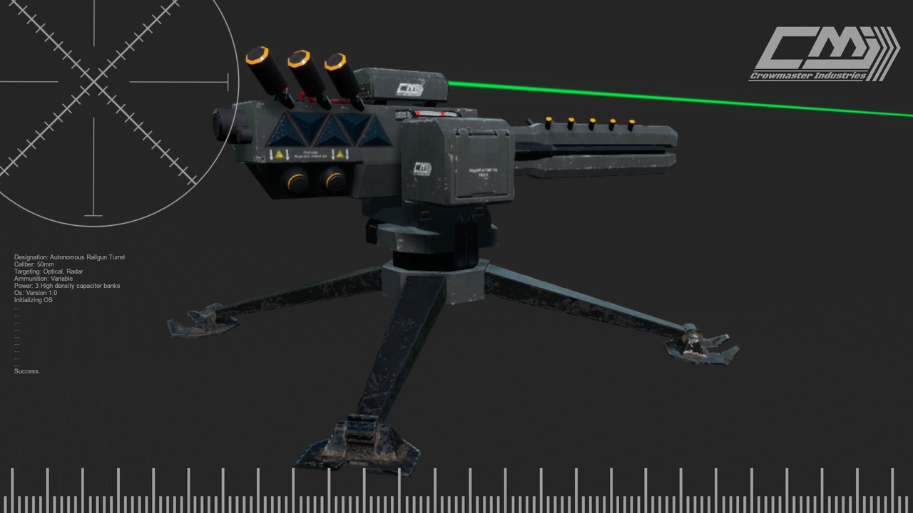 This pack contains a higly customizable Railgun turret with variable ammunition. The turret is capable of tracking multiple targets within its range and can engage the targets with multiple types of ammunition. The ammunition is almost as important as the turret itself. It uses three different ammo types including Armor Piercing and Delayed payload Ammunition that can penetrate obstacles. The Railgun turret itself has 22 settings for high level of customization, so you can make it truly yours.