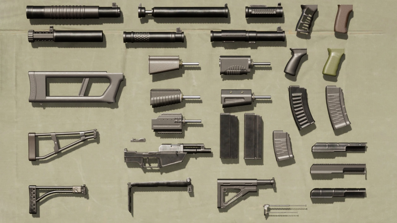 Realistic Modular Assault Rifles Pack includes all elements from assets: